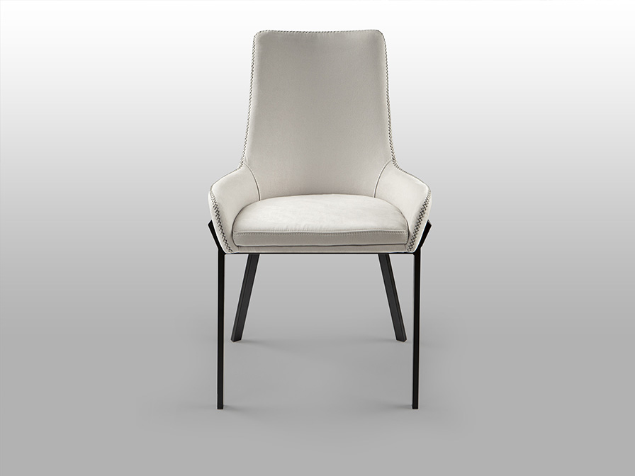 Diane étkezőszék 9357841 igazi frissességet és modern stílust visz az Ön otthonába. A hófehér, 100% poliészter textil kárpitot az egyedi, szürke dekoratív dísztűzés tesz különlegessé, ezzel egy vizuális mélységet és karaktert adva a bútornak. A világos ülőfelület, és a matt fekete fém váz közötti éles kontraszt pedig a kortárs design egyik legkedveltebb stílusjegye, amely egyszerre sugároz légies eleganciát és stabilitást.