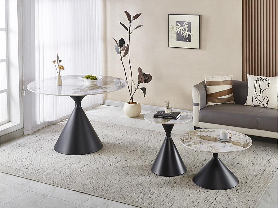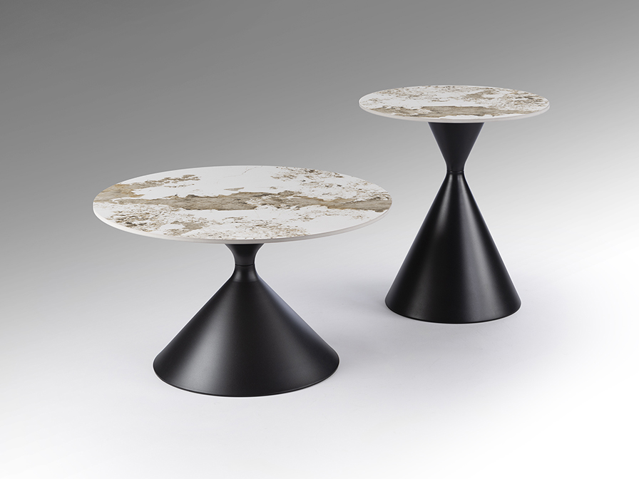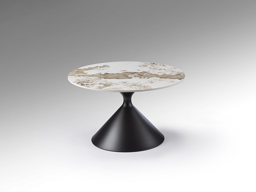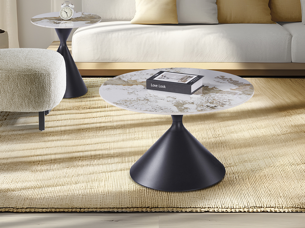 Panda dohányzóasztal 719056 Tegye teljessé nappaliját ezzel a stílusos kerek dohányzóasztallal, amely a hihetetlenül előnyös kompakt méretet ötvözi a luxus megjelenéssel. A szürke, Pandora márvány mintázatú porcelán asztallap nemcsak egy lenyűgöző vizuális élményt nyújt, de felülete rendkívül ellenálló és könnyen kezelhető is, így tökéletes választás lehet az Ön otthonába! A dinamikus, homokóra formát idéző matt fekete fémtalp egy stabil, de mégis egy és modern alapot biztosít, és bármely fotel vagy kanapé mellé pedig könnyen beilleszthető! Ez a design bútordarab az elegancia és a modern kivitelezés mesteri találkozását hozza el az Ön otthonába úgy, hogy közben bármely modern étkezőt stílusos hellyé varázsol.