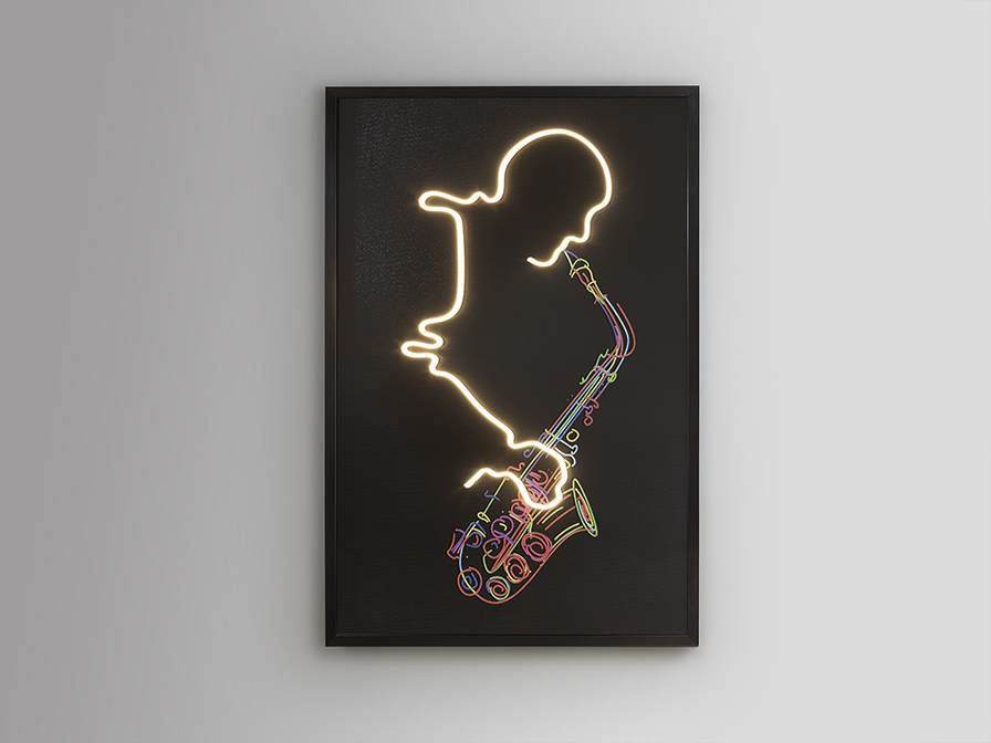 Saxofón festmény 301473 – 80 x 120 cm Tegye különlegessé otthonát ezzel a lenyűgöző, és modern faliképpel, amely a zene varázsát ötvözi a kortárs világítástechnikával. A minimalista vonalvezetésű alkotáson egy szaxofonos alakja elevenedik meg, akinek hangszerét és mozdulatát egy beépített dekorációs LED-fényszalag teszi igazán különlegessé. Az aranyló fények nemcsak mélységet adnak a képnek, ezzel egy drámai és mélységet adó ragyogást kölcsönözve ennek a csodálatos kompozíciónak. De ez még nem minden! A prémium minőségű, hordozóra kasírozott és elegáns fekete keretbe foglalt festmény nem csupán egy dekorációt képvisel, hanem egy hangulatteremtő fényforrásként is funkcionál. A műalkotás hátoldalán pedig egy diszkréten elhelyezett csatlakozódoboz és hálózati kábel található, amely gondoskodik a könnyű üzembe helyezésről, hogy a kép pillanatok alatt a nappali vagy hálószoba legizgalmasabb látványossága legyen.