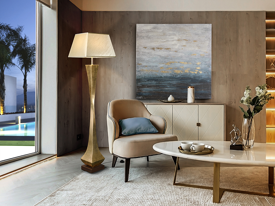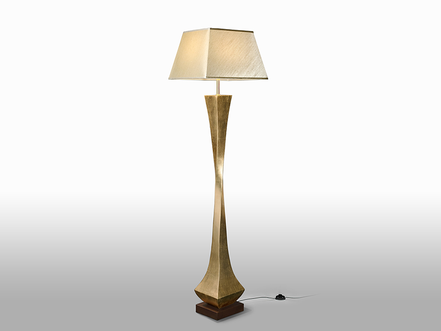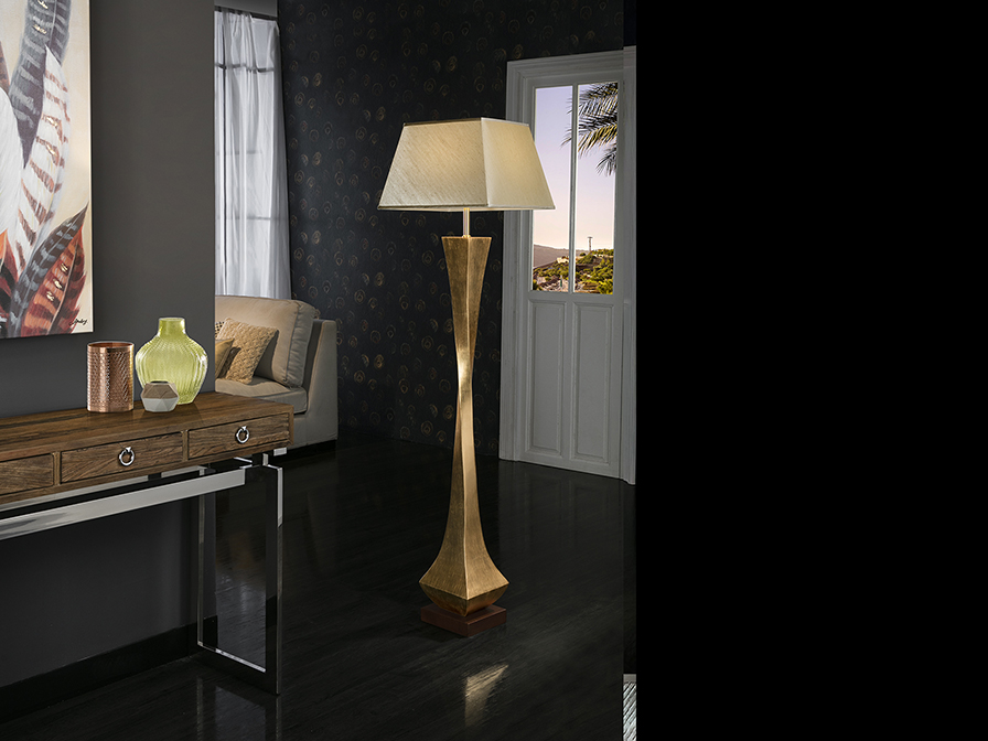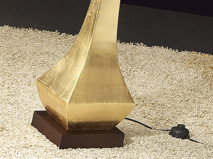 Deco állólámpa 662514 Vigyen időtlen eleganciát és melegséget az Otthonába ezzel a lenyűgöző, klasszikus stílusú állólámpával, amely a kézműves gondosság és a nemes anyagok tökéletes harmóniáját testesíti meg. A lámpa fém teste egyedülálló, aprólékos kézi munkával készült aranyfüstös borítást kapott, melynek finom textúrája egy különleges antikolt hatású fényt kölcsönöz a lámpatestnek. Ez a ragyogó test egy elegánsan megformált, szögletes, diófa felületű talpon nyugszik, amely biztosítja a stabilitást, és természetes, meleg tónusával tökéletes kontrasztot alkot az arany felületekkel. A kompozíciót egy prémium minőségű, selyemhatású textil lámpabúra koronázza meg, amely lágyan megszűri a fényt, káprázásmentes, hívogató és meghitt atmoszférát teremtve a helyiségben.