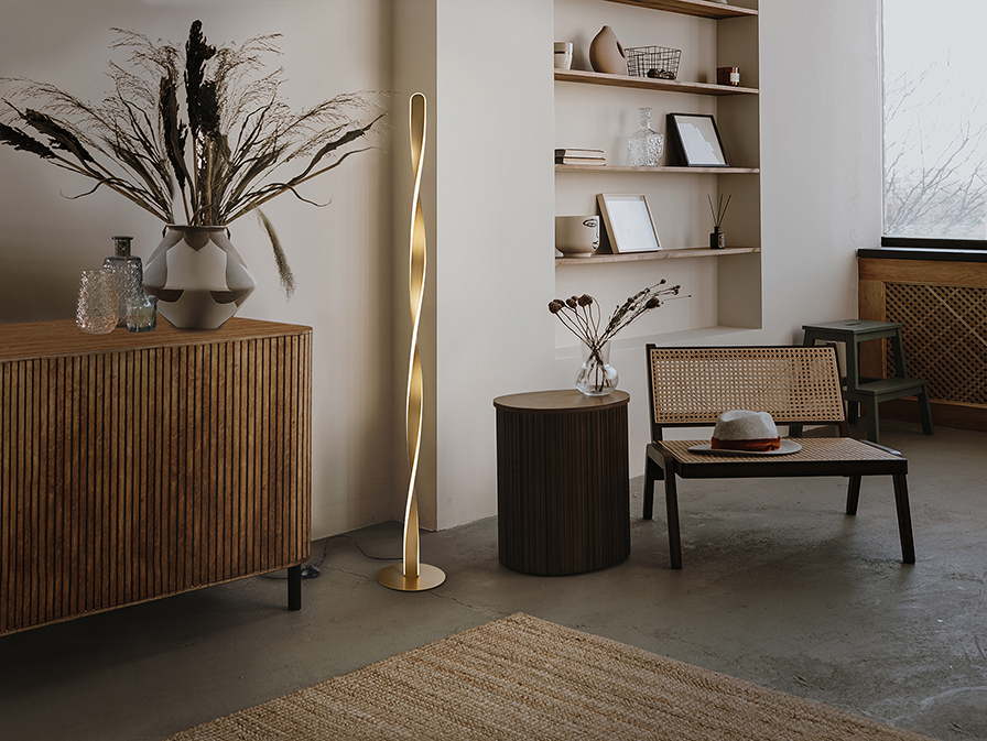 Twist állólámpa 219213 elegáns, fémből készült lámpa kifinomult, szálcsiszolt arany felülettel. A fényt az opál szilikon diffúzor lágyan, és egyenletesen oszlatja el, amely egyszerre teremt modern, ámde meghitt hangulatot a lakás bármely pontjában, ahol akár több darabból álló látványos kompozíciót is létre tudunk hozni belőle. De ez a csodaszép állólámpa remekül mutathat nappaliban vagy akár az Ön hálószobájában is, ahol a modern design és a funkcionalitás tökéletesen találkozik.