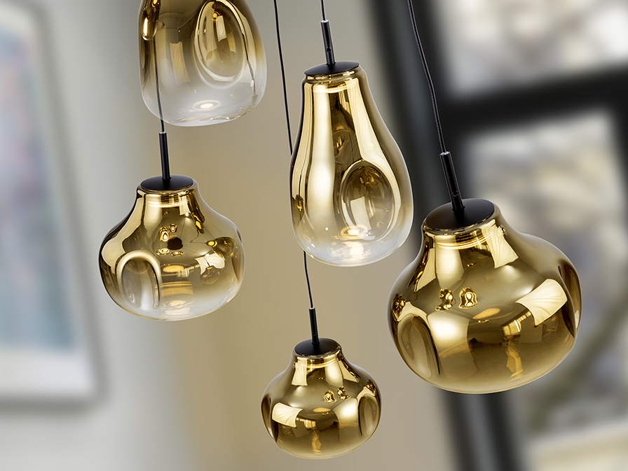 Aledis csillár 314862 lenyűgöző, öt fényforrásból áll, és a modern indusztriális megjelenés és a kifinomult eleganciának egy olyan harmonikus találkozása, melyben a vázat stabil, matt fekete fém alkotja. A lámpa igazi művészi értékét a kézzel fúvott üvegbúrák adják, amelyek különleges, aranyszínű dekoratív bevonatban tündökölnek. Ez a fémes tónus egy látványos átmenettel, fokozatosan halványul el, addig, amíg a búra alján teljesen átlátszóvá nem válik, ezzel szabad utat engedve a fénynek. A matt sötét szerkezet és a meleg tónusú, színátmenetes üveg kontrasztja nemcsak egy stílusos megjelenést biztosít, egy hanem rendkívül barátságos és hívogató atmoszférát is teremt bármely helyiségben. A függeszték állítható hosszúságú, így könnyedén igazítható különböző belmagasságú terekhez, vagy akár több darabot is tudunk vele kombinálni. Kiváló választás lehet nappaliba, étkezőasztal fölé vagy hálószobába is, ahol nem csak a design, hanem a funkcionalitás is találkozik.