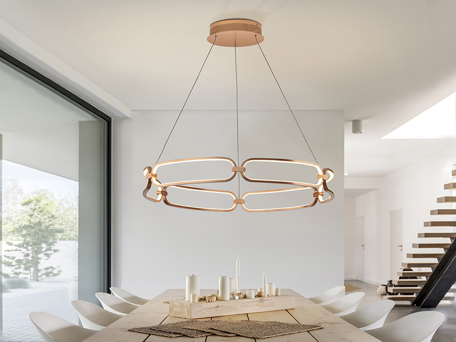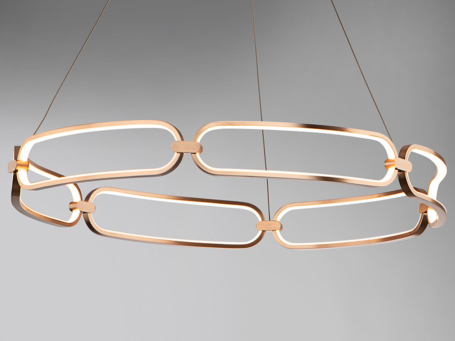 Colette csillár 786966D LED égős függesztett lámpa, szálcsiszolt alumíniumból, rózsa arany kivitelben.