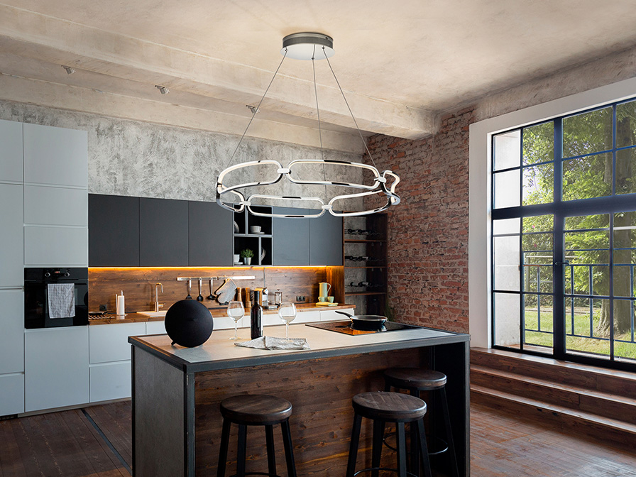 Colette csillár 786973 LED égős függesztett lámpa, szálcsiszolt alumíniumból, króm kivitelben.
