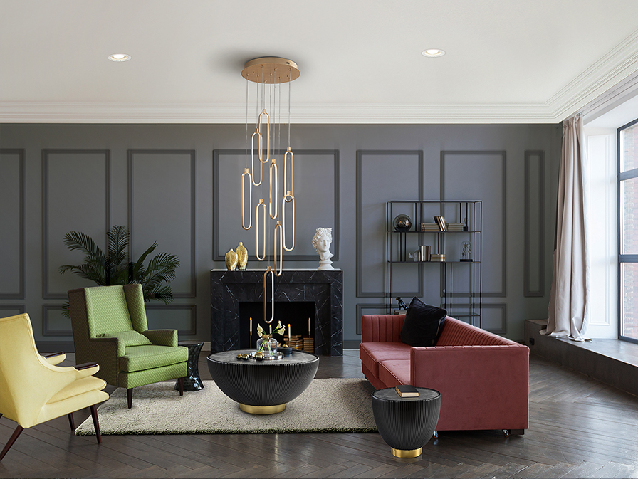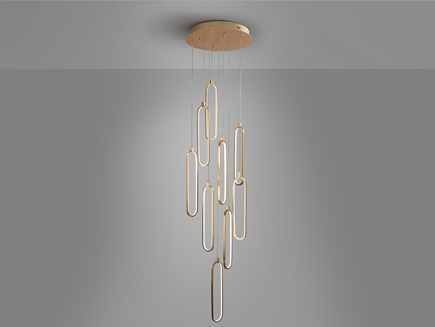 Colette csillár 787594 9 LED égős függesztett lámpa, szálcsiszolt alumíniumból, rózsa arany kivitelben.