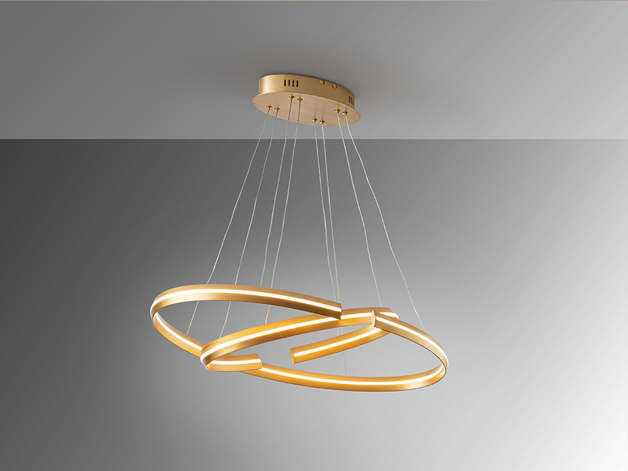 Elipse csillár 652138B Ez a lenyűgöző, két egymásba fonódó ellipszis formájú LED lámpa a futurisztikus design és a prémium anyaghasználat tökéletes találkozása, melynek fémből és alumíniumból készült váza egy kifinomult, szálcsiszolt arany felületet kapott. A modern íveket pedig egy minőségi opál akril diffúzor egészíti ki, ezzel egy misztikus, egyedi fénykibocsátást elérve. A függeszték állítható hosszúságú, így könnyedén igazítható különböző belmagasságú terekhez, vagy akár több darabot is tudunk vele kombinálni. Kiváló választás lehet nappaliba, étkezőasztal fölé vagy hálószobába is, ahol nem csak a design, hanem a funkcionalitás is találkozik.