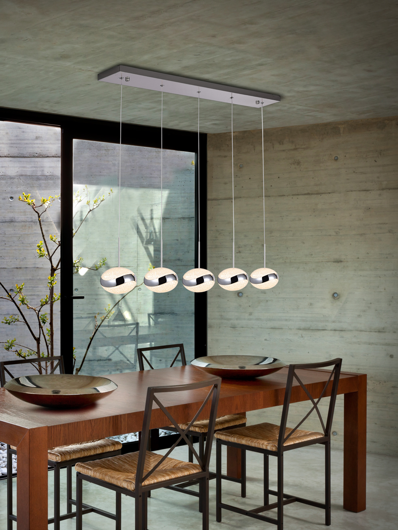 Lipse csillár 377523 egy öt különálló fényforrásból álló LED lámpatesttel rendelkezik, amely a modern minimalizmus és a technikai precizitás kifinomult ötvözetét alkotja. A lineáris elrendezésének köszönhetően pedig tökéletes választássá teszi a hosszú étkezőasztalok vagy konyhaszigetek fölé. A lámpa váza, és a téglalap alakú mennyezeti rögzítő alapja, egy elegáns króm felületű fémből készült, amely tükörszerű csillogásával prémium megjelenést kölcsönöz a belső térnek. A függeszték állítható hosszúságú, így könnyedén igazítható különböző belmagasságú terekhez, vagy akár több darabot is tudunk vele kombinálni. Kiváló választás lehet nappaliba, étkezőasztal fölé vagy hálószobába is, ahol nem csak a design, hanem a funkcionalitás is találkozik.