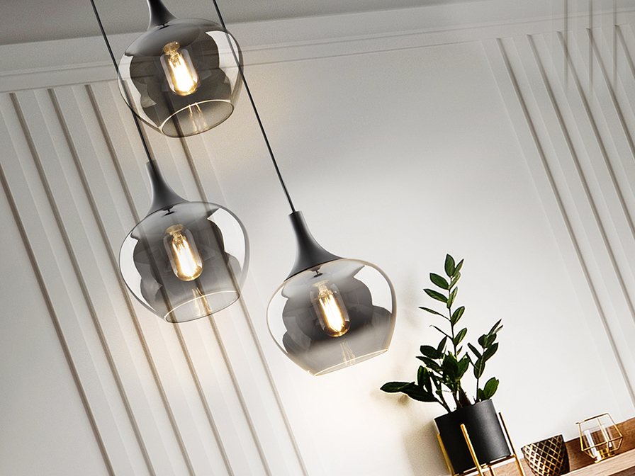 Opaz csillár 614375 Ez a kifinomult, három fényforrásból álló lámpa a modern minimalizmus és a látványos fényjáték tökéletes ötvözete, melynek váza elegáns matt fekete fémből készült. A design igazi különlegességét a 19 cm átmérőjű, formázott üvegbúrák adják, amelyek látványos, átmenetes füstszürke borítást kaptak. Ez a speciális dekoratív technika lehetővé teszi, hogy az üveg sötétebb tónusa egy lágy színátmenettel különleges mélységet és misztikus eleganciát adjon a kiáramló fénynek. A függeszték állítható hosszúságú, így könnyedén igazítható különböző belmagasságú terekhez, vagy akár több darabot is tudunk vele kombinálni. Kiváló választás lehet nappaliba, étkezőasztal fölé vagy hálószobába is, ahol nem csak a design, hanem a funkcionalitás is találkozik.