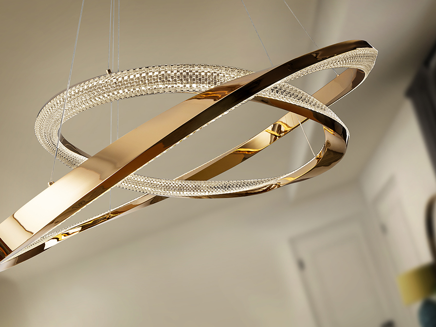 Orbitas csillár 554107 Hozzon modern eleganciát az otthonába ezzel a lenyűgöző, két gyűrűből (Ø60 cm és Ø80 cm) álló függőlámpával, amely a minimalista dizájnt ötvözi a luxus megjelenésével. A lámpa acélból és alumíniumból készült, fényes arany bevonata pedig exkluzív ragyogást kölcsönöz. Az egyedi megjelenést a víztiszta, fazettált akril diffúzor teszi teljessé, amely gyönyörűen megtöri a fényt, ezzel káprázatos csillogást kölcsönözve. A csillár állítható hosszúságú, így könnyedén igazítható különböző belmagasságú terekhez, vagy akár több darabot is tudunk vele kombinálni. Kiváló választás lehet nappaliba, étkezőasztal fölé vagy hálószobába is, ahol nem csak a design, hanem a funkcionalitás is találkozik.