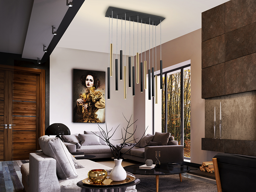 Varas csillár 373425D 14 LED égős függesztett lámpa, fémből készült lámpatesttel, arany és matt fekete kivitelben. Opál szilikon búrákkal, amelyek különleges fénytörést és elegáns, ragyogó hatást keltenek, és egyszerre gondoskodnak a modern, de mégis otthonos hangulat megteremtéséről, a lakás bármely helyiségében. A csillár állítható hosszúságú, így könnyedén igazítható különböző belmagasságú terekhez, vagy akár több darabot is tudunk vele kombinálni. Kiváló választás lehet nappaliba, étkezőasztal fölé vagy hálószobába is, ahol nem csak a design, hanem a funkcionalitás is találkozik.