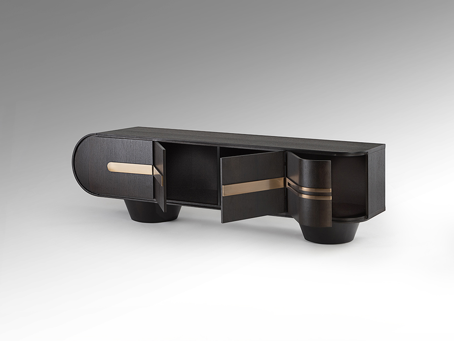 Luca Tv állvány 505345 a klasszikus sötét tölgyfa eleganciáját emeli új szintre, a különleges modern design elemeivel. A bútor váza strapabíró MDF-ből készült, amelynek sötét tölgy felülete mély, természetes karaktert visz a nappaliba. A szekrény igazi ékkövei azonban a rózsaarany bevonatú, rozsdamentes acélból készült vasalatok és díszítő részletek, amelyek a legapróbb részletekig egy kifinomult, és luxus összhatást kölcsönöznek a darabnak. A funkcionalitás és az esztétikum itt kéz a kézben jár; hiszen a négy tágas ajtó mögött bőséges hely rejlik a médiatartozékok, konzolok és egyéb eszközök diszkrét tárolására, így a környezet mindig rendezett maradhat.